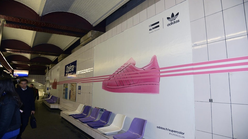 Tout le long du quai à Opéra ligne 3, Adidas présente sa nouvelle collection Supercolor !