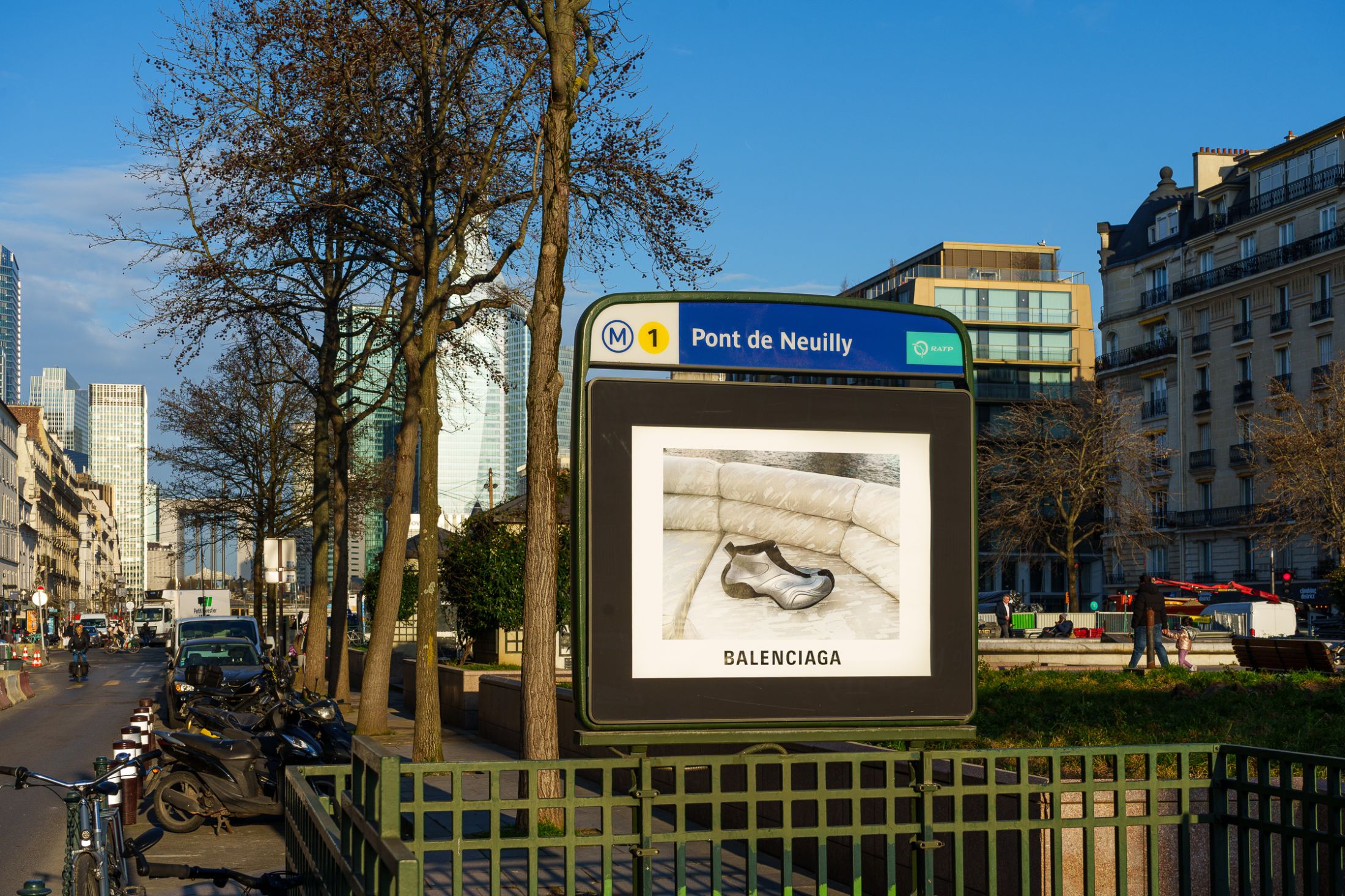 Des visuels décalés et des produits phares disposés sur des canapés ont transformé ces espaces du quotidien en vitrines de luxe. Cette initiative visait à captiver l’attention, renforcer la notoriété de Balenciaga et offrir un avant-goût des tendances à venir.