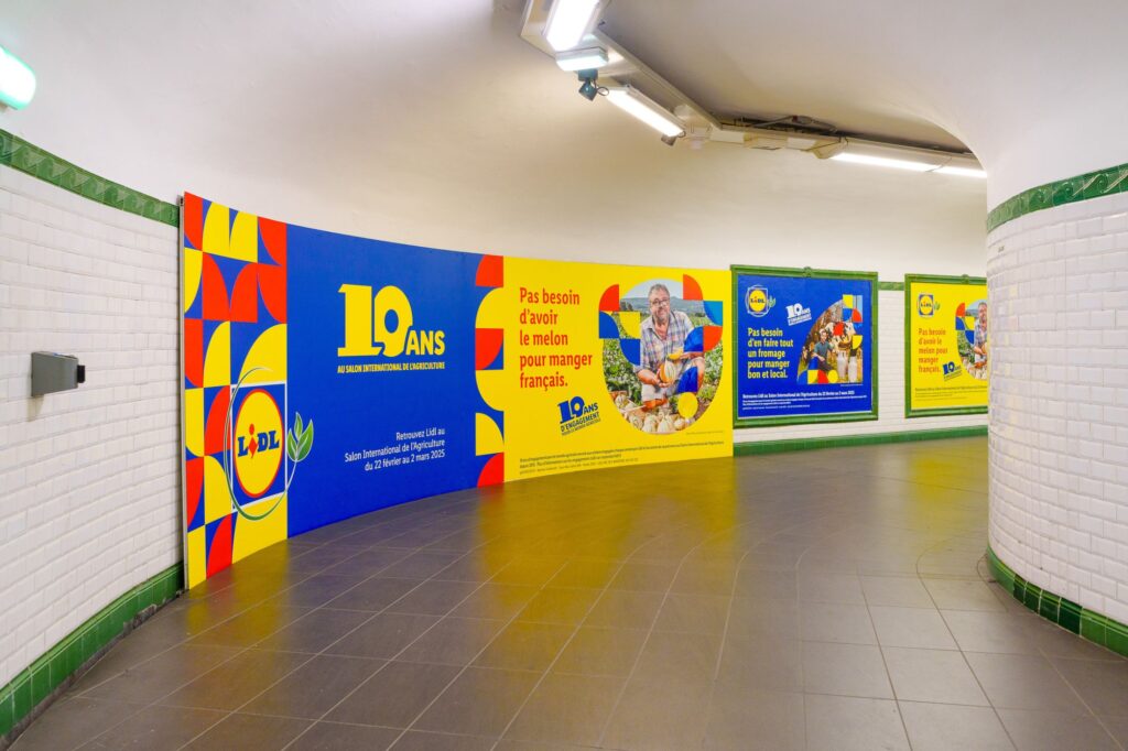 Fresques monumentales, habillages muraux, contremarches aux couleurs de la marque.. Lidl a déployé une campagne haute en couleurs avec des formats immersifs pensés pour surprendre et capter l’attention.