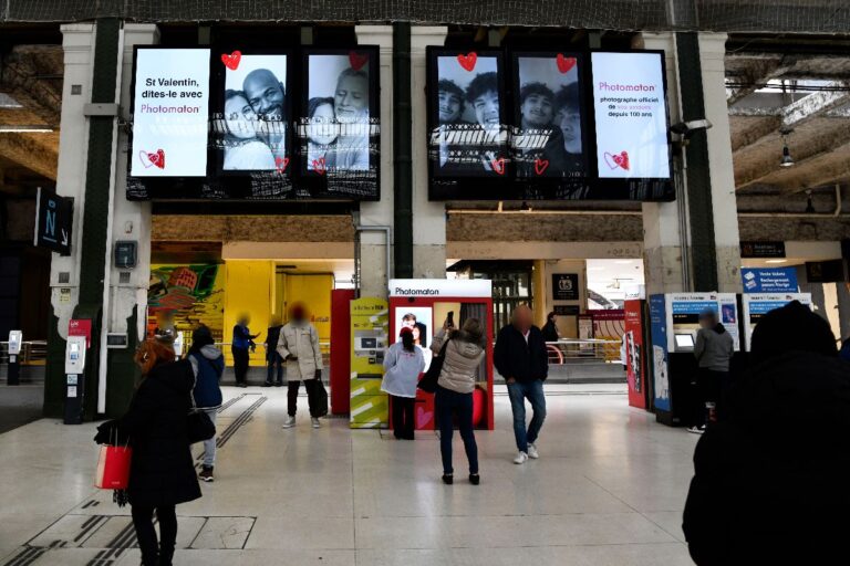 Une cabine photo spécialement habillée pour l’occasion invitait les voyageurs à immortaliser leur plus beau sourire, en solo ou en duo. Le petit twist ? Leurs clichés étaient aussitôt diffusés sur les écrans digitaux de la gare, transformant les allées en véritable galerie d’amour.