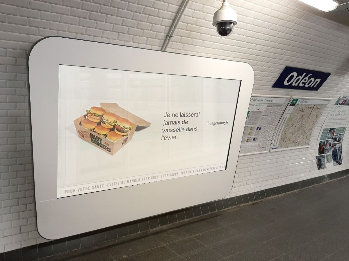Avec un Q-130, des faces 12m² et 8m² couplées avec des écrans DOOH 98 pouces, Burger King a investi un réseau puissant et homogène sur les quais du métro et du RER parisien ! Une campagne impactante qui a touché près de 6 millions d’individus.