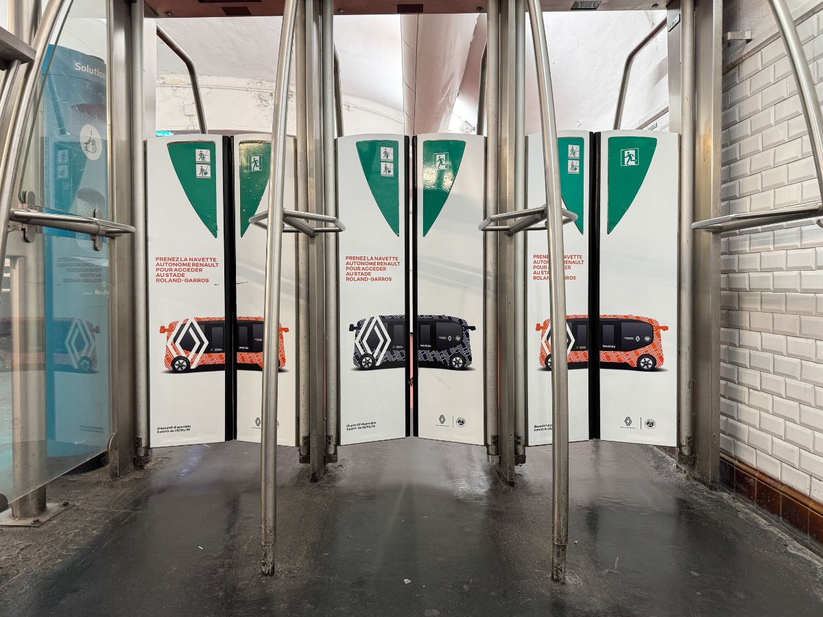 Une présence forte et immersive, au service de son modèle emblématique : la Renault 5, mise en avant avec son score A (0g CO₂/km) et un message clair : « Prenez la navette autonome Renault pour accéder au stade Roland-Garros ». Une campagne qui associe mobilité responsable et passion du sport, parfaitement en phase avec le tempo du tournoi.