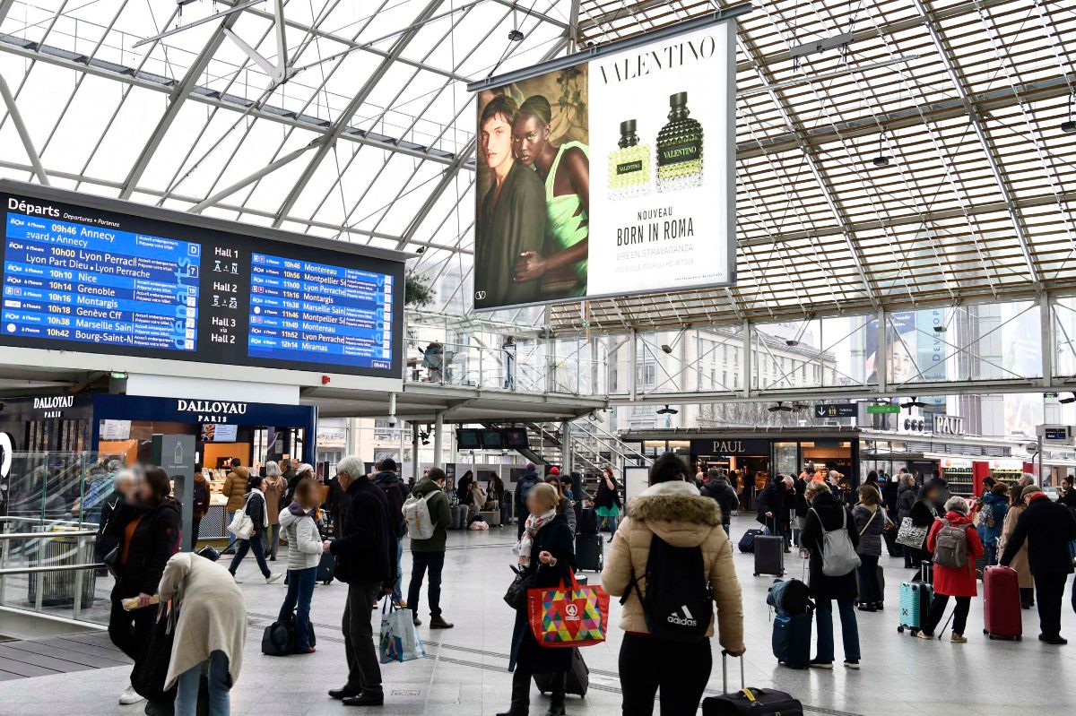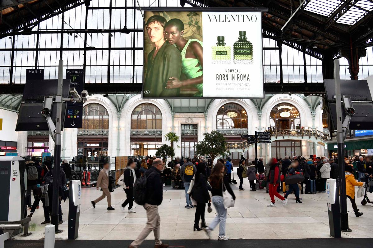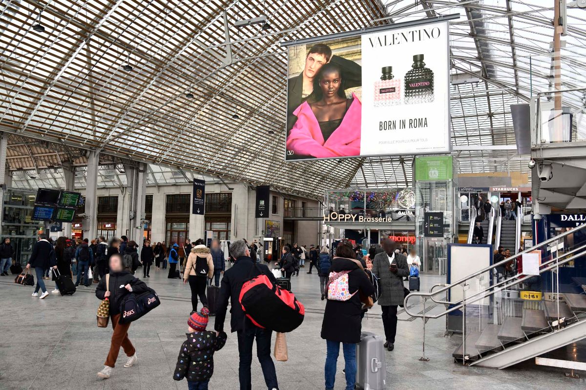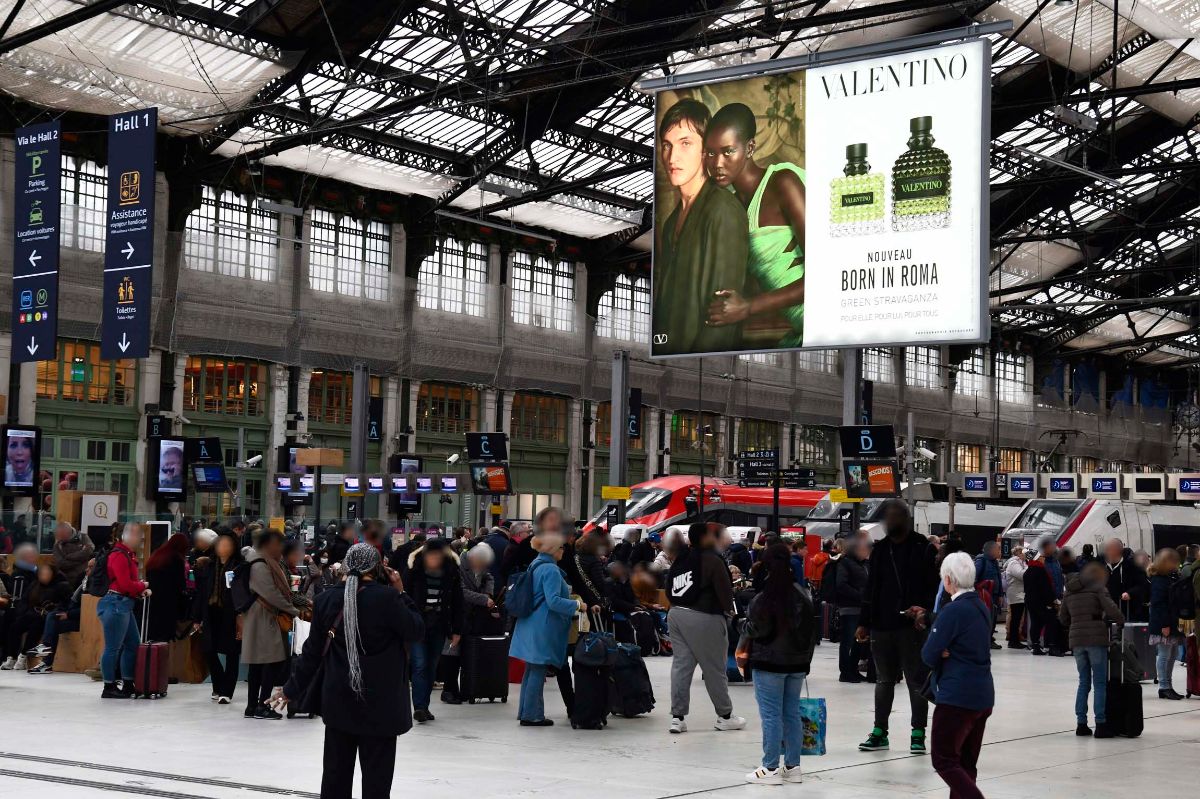 Pour sa nouvelle campagne « Born in Roma « , Valentino a investi le réseau Emblématique en gare, un dispositif national au format XXL, au croisement des flux quotidiens et des grands départs.