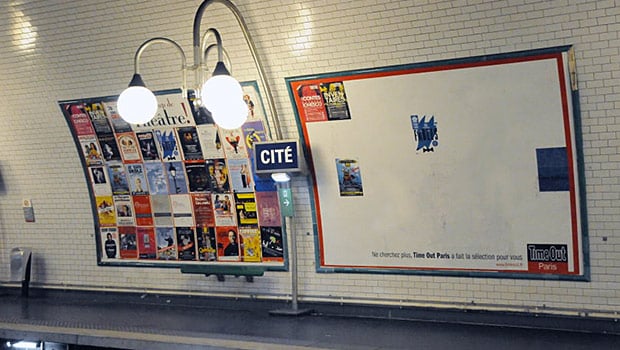 Pour promouvoir sa rubrique « Arts & Scènes », le site internet Timeout qui référence tous les lieux et événements de la capitale, a choisi d’investir le 12m² mitoyen du panneau appartenant au réseau « Coup de Théâtre »: L’expert théâtre de Timeout a sélectionné 5 pièces de théâtre sur les 40 proposées et a reproduit l’affiche mais en n’y laissant que les 5 pièces choisies avec la signature « Ne cherchez plus, Timeout a fait la sélection pour vous » ! De quoi attirer l’œil des voyageurs.