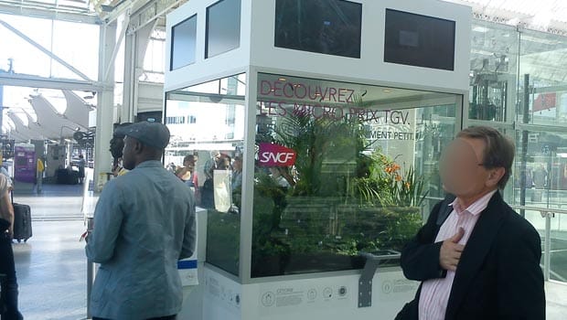 Pour promouvoir les Micro-Prix TGV, la SNCF, avec son agence TBWA/Paris, ont invité les voyageurs du hall 2 de la gare de Paris-Lyon dans le monde de l’infiniment petit ! Plus de 500 insectes dont des coccinelles, des grillons, des criquets, des sauterelles, etc. ont été regroupés dans un vivarium de 4m3, le plus grand d’Europe, pour devenir les ambassadeurs des Micro-Prix TGV (des aller-retours à partir de 30 €). Grand succès ! (du 30 août au 15 septembre).