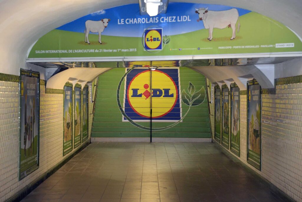 A l’occasion du salon de l’agriculture, METROBUS Event personnalise la totalité de la station Porte de Versailles du 17 février au 2 mars aux couleurs de Lidl.