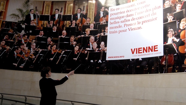 Pour inciter les Français à venir découvrir Vienne, l’Office du Tourisme de la Ville de Vienne a mis en place pour la capitale autrichienne une animation inédite à la station Saint-Lazare. Au centre de cette station, une bâche de 125 m² représentant l’Orchestre Symphonique de Vienne, a été mis en place du 05 au 18 […]
