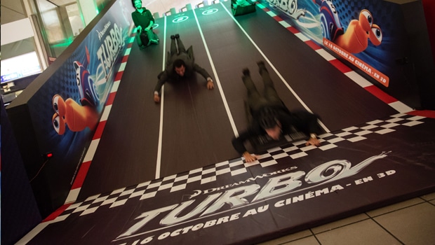 A l’occasion de la sortie du film d’animation Turbo, une partie des escaliers de la station de métro – RER Auber est transformée en piste de courses ! Du 07 au 12 octobre 2013, armés de tapis pour glisser plus rapidement, les usagers du métro – RER retombent en enfance en dévalant la pente à pleine […]