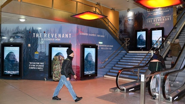 A l’occasion de la sortie le 24 février 2016 de « The Revenant », réalisé par Alejandro González Iñárritu et 12 fois nominé aux Oscars, MEDIAGARES a déployé un dispositif mettant en avant l’ambiance glacée et glaçante du film : l’adhésivage des contremarches et le digiwall de Paris Gare de Lyon figurant un Leonardo Di Caprio plus vrai que nature.